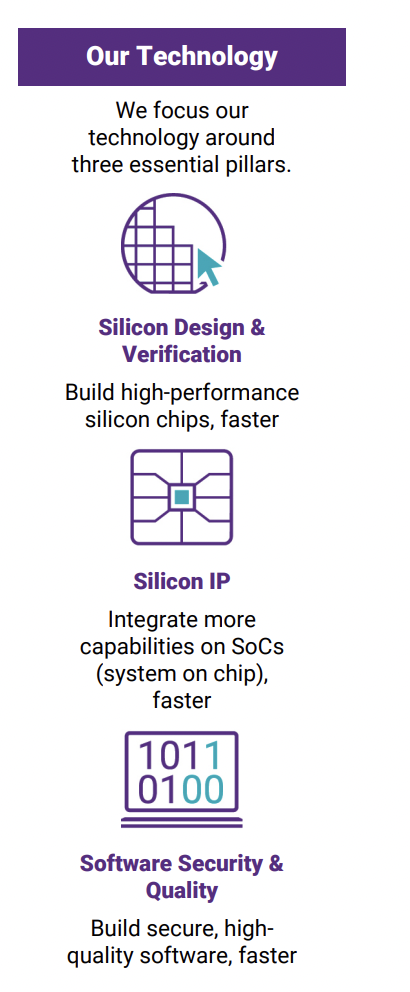 Synopsys' Silicon to Software technologies and services are designed to help their customers—chip and system engineers and software developers—to speed up time to market, achieve the highest quality of results, mitigate risk, and maximize profitability.